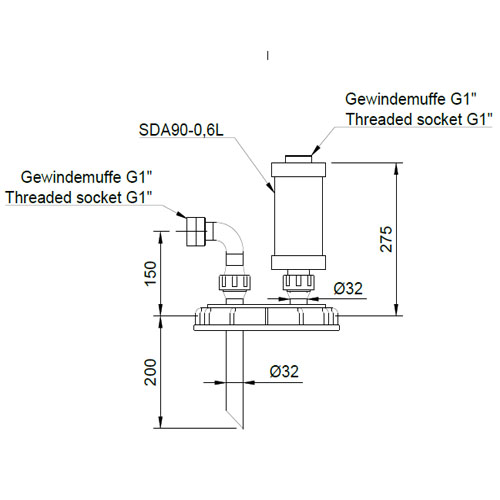 IBC-Schraubkappe DN 225 aus PE-el, mit Säuredunstabscheider SDA90 und Befüllanschluss G1", elektrisch-leitfähig