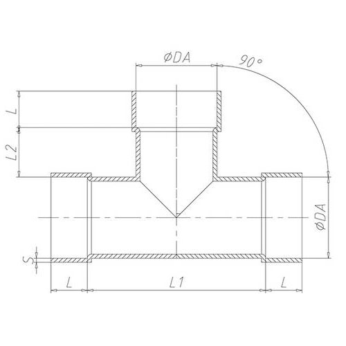 PP-EL-s T-Stück mit Muffen, Abgang 90°, elektrisch leitfähig