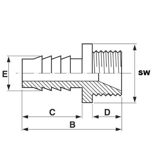 ABS Druckschlauchtülle mit konischem BSP-Aussengewinde