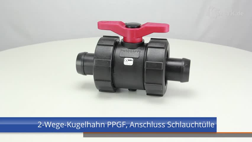 2-Wege-Kugelhahn PPGF, Schlauchtüllen, EPDM  = roter Hebel