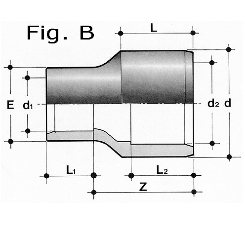 PVC U Reduktion, lang, Klebemuffe/Klebestutzen