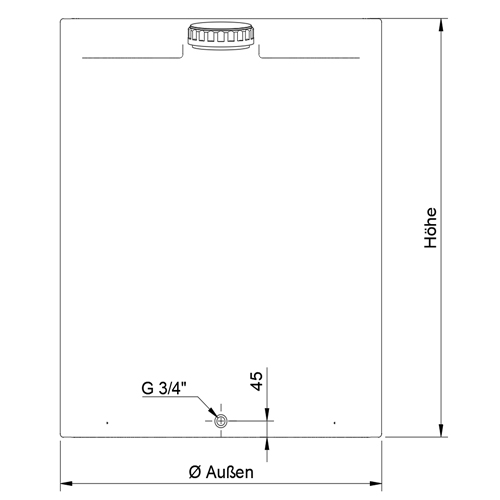 Dosierbehälter Typ E PE-el Inhalt: Wahlweise 750 Liter oder 1000 Liter Höhenangabe ohne Schraubdeckel Material: PE-el (elektrisch leitfähig), schwarz - UV-Stabilisiert, lebensmittelecht, chemikalienbeständig - Nahtlos im Rotations-Schmelzverfahren hergestellt - Literskala eingeformt - Eingeformte Gewindemuffe 3/4", nicht aufgebohrt, inkl. Stopfen und EPDM-Dichtung - Eingeformte Einlegemuttern 4 Stück M6 für die Montage von Befestigungswinkeln - Wandstärke: Standard, für Medien mit einer relativen Dichte bis 1,6 - Inkl. Schraubdeckel DN160 aus PP-el (elektrisch leitfähig), schwarz mit EPDM-Flachdichtung - Chemikalienbeständig ähnlich der von PE100 Andere Größen und Ausführungen auf Anfrage. |
