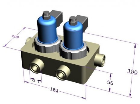 - mit zwei Magnetventilen vom TYP 150 in der Ausführung als 2er Kombination