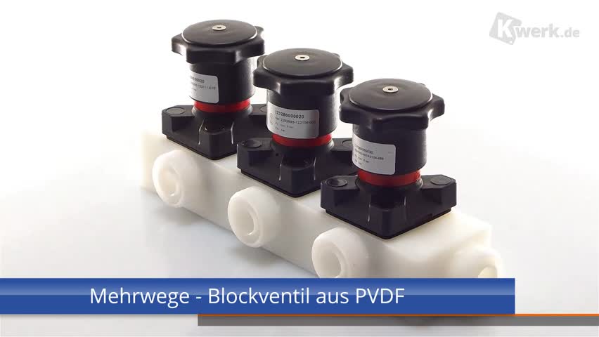 Blockventile aus Kunststoff, finden Ihre Anwendung im Anlagen- und Apparatebau bei engen Einbauverhältnissen. KWERK.DE entwickelt Blockventile als Magnetventilausführung und Membranventillösung in den Werkstoffen PVCU, PVCC, PE, PP, PVDF, PTFE und Sonderwerkstoffen. Mehrwegeventilblöcke werden zur Entnahme, Beprobung, Verteilung und dem Mischen von Medien eingesetzt.