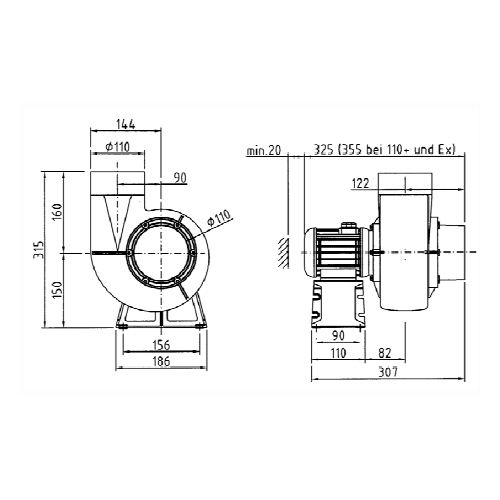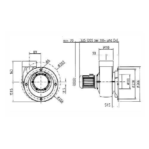 Kleinradialventilator FRv 110+ / 2/ F/ EX