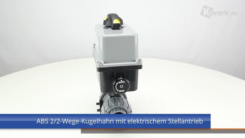 2/2-Wege-Kugelhahn mit gesicherten Überwurfmuttern aus ABS mit elektrischem Stellantrieb