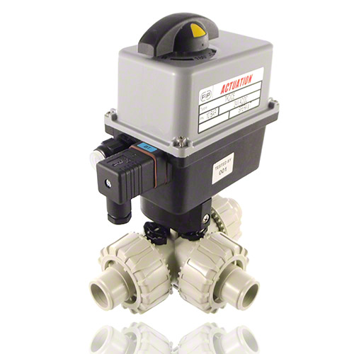 3-Wege-Kugelhahn aus PP mit elektrischem Stellantrieb
