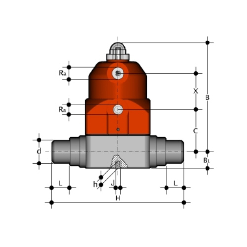 | 2/2-Wege-Membranventil mit pneumatischem Stellantrieb und optischer Stellungsanzeige Gehäusewerkstoff: PP Funktion: normal geschlossen (NC) Membranwerkstoff: wahlweise EPDM - FKM - PTFE/EPDM Steuerdruck: 4 - 7 bar Steueranschluss: R 1/4' Steueranschluss in Durchflussrichtung: auf Anfrage Antriebsfarbe: schwarz Betriebsdruck: einseitig anstehend Anschluss: Schweißstutzen zum Heizelementmuffenschweißen |