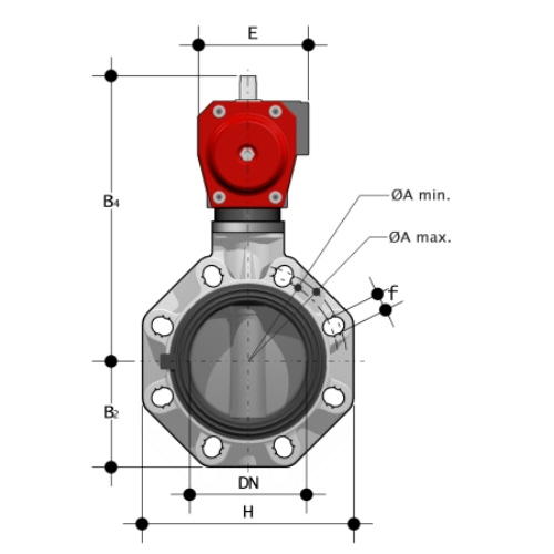 PVC U 2/2-Wege-Industrie-Absperrklappe, pneumatische Ausführung