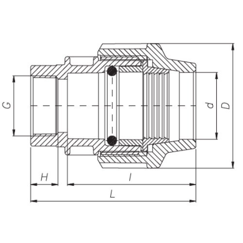 PP Klemmverbinder Typ UNIDELTA für PE Rohre, Anschlussverschraubung mit Innengwinde