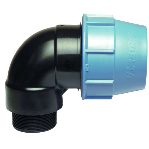 PP Klemmverbinder Typ UNIDELTA für PE Rohre, Winkel 90° mit Außengewinde