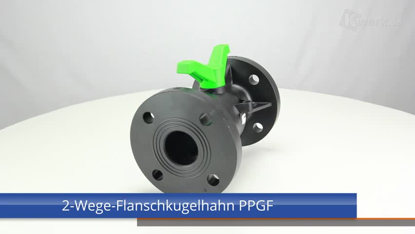 2-Wege-Flanschkugelhahn PPGF, FPM = grüner Hebel