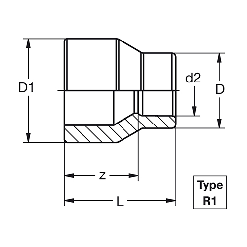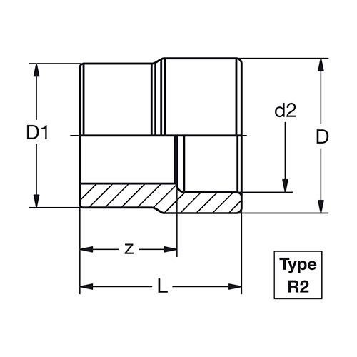 D1 - d2 Type  R1 Type R2 D2 L z Gewicht VE Art.-Nr. Artikel bestellen