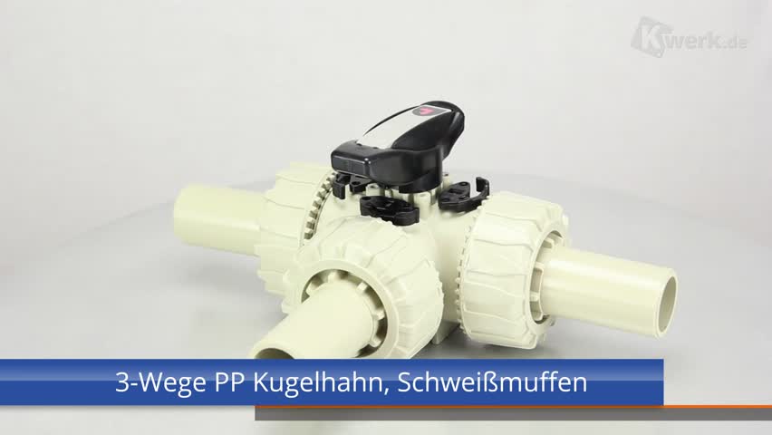 | - Bohrung: T-Bohrung - Anschluss: PP-LS-Stutzen SDR 11 zum Heizelementstumpf- und Heizwendelschweißen - radial ein- und ausbaubar - mit gesicherter Überwurfmutter - Dichtung: PTFE/FPM |