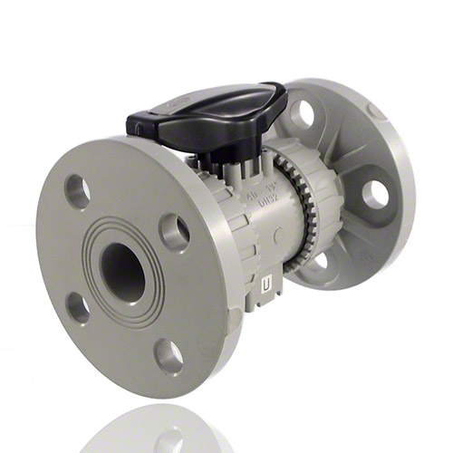 PVC-C 2-Wege-Kugelhahn, FPM, Festflansch