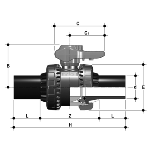 PVC-U Kugelhahn VEE, PE100-LS-Stutzen, PE-EPDM