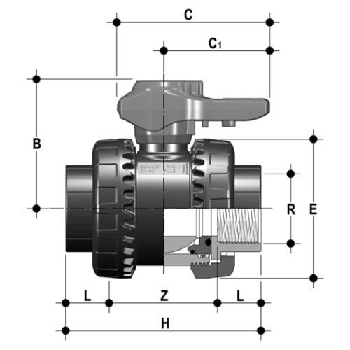 PVC-U Kugelhahn VXE, Gewindemuffe, FPM