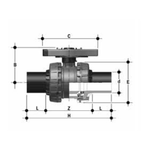 PVC-U KugelhahnVXE , PE100-LS-Stutzen, FPM, d 75- d 110 mm