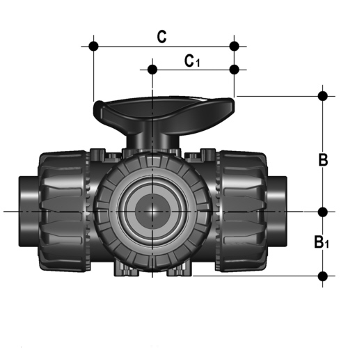 PVC-U 3-Wege-Kugelhahn, L-Bohrung, Klebemuffe, EPDM