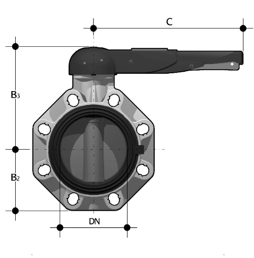 PVDF Universal-End-Absperrklappe FK, Handhebel, EPDM