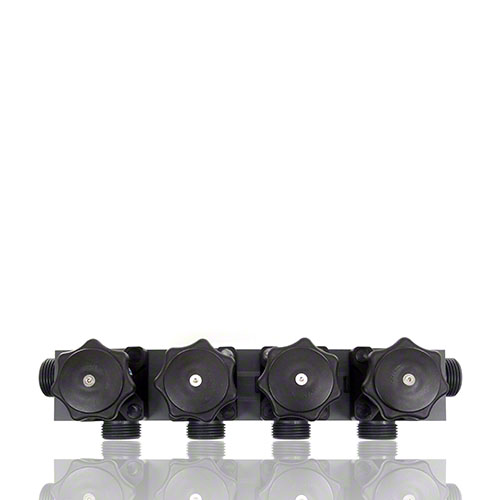 Mehrwegeventil aus PVCC mit vier Handantrieben, Abgang reduziert, Membrane EPDM