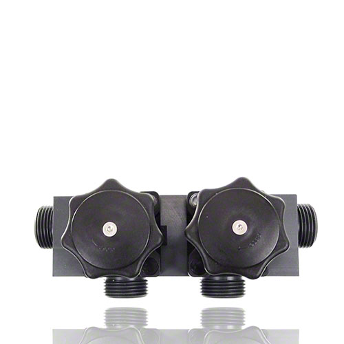 Mehrwegeventil aus PVCU mit zwei Handantrieben, Abgang reduziert, Membrane EPDM