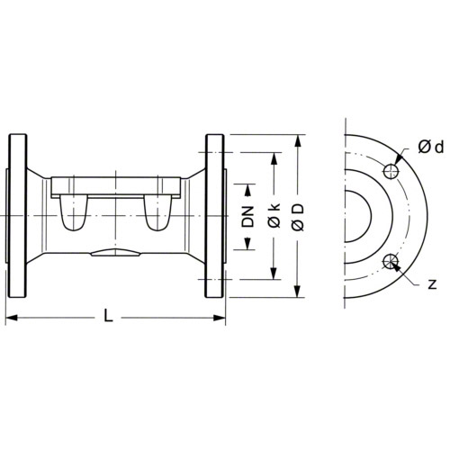 | - Metall-Membranventil - Flansch EN 1092, RF, Länge EN 558-1, Reihe 1 - Kunststoff-Kolbenantrieb, pneumatisch betätigt NC - Steuerluftanschluss in Durchflussrichtung |