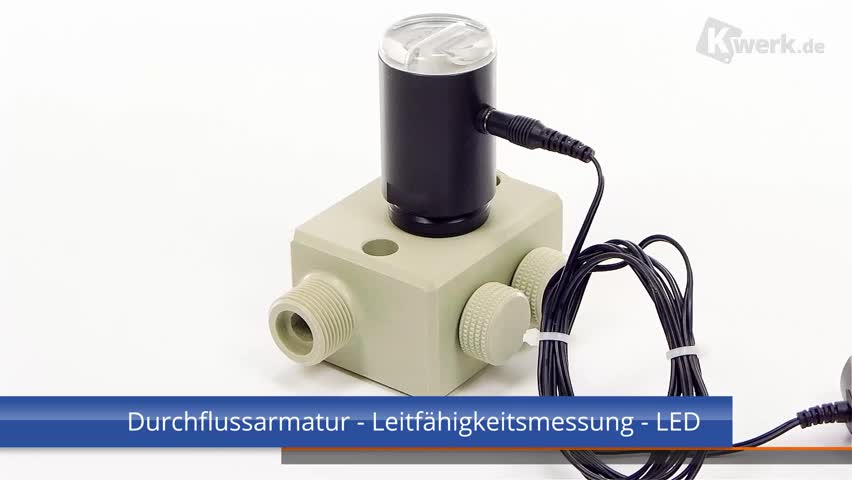 Durchflussarmatur Leitfähigkeitsmessung mit LED Leitfähigkeitsmessung von 0 bis max. 2.000 ?S/cm - hochwertige Messarmatur mit kleinsten Einbaumaßen - Anschlüsse für Verschraubungen d 20/1" - konstantes Mediumniveau für Feuchthaltung der Elektroden Elektrische Daten - Messbereiche 0 bis max. 2.000 ?S/cm (oder nach Kundenwunsch), absolut, nicht temperaturkompensiert - Spannungsversorgung 12 V DC mittels mitgeliefertem Steckernetzteil - Leistungsaufnahme < 500 mW - Elektroden 1.4404, Abdichtung je 2 x NBR 70 Technische Daten - Einbaulänge ca. 120 mm - Einbauhöhe ca. 120 mm - Druckfestigkeit max. 6 bar bei 60 °C - Einsatzbereich bis 60 °C - Material: Armatur PP, Messgerät PP oder POM, Überwurfmutter PVC - Dichtung; FPM, PFTE auf Anfrage Leitungsanschlüsse - Einlegteil für Verschraubung aus PP, PE, PVC (DN 12 d16) - Leitungsanschlüsse - 2x Anschlüsse 3/4" Außengewinde - Wandbefestigung: Durchgangsbohrung 6,3 mm für M6 Innensechskantschrauben Optional: - 1 Ablassventil zur Probeentnahme Andere Ausführungen Werkstoffe auf Anfrage möglich. |