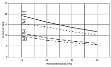 Temperatureinsatzgrenzen und max. BetriebsüberdrückePE ist im Temperaturbereich von - 40°C bis +60°C einsetzbar. Bezgl. der max. Innendruckbelastbarkeit von Rohren und Formteilen verweisen wir auf die Grafiken auf den nachfolgenden Seiten. Bzgl. der max. Innendruckbelastbarkeit von Armaturen beachten Sie bitte die technischen Hinweise bei den jeweiligen Armaturen oder kontaktieren Sie unser Produktmanagement. |